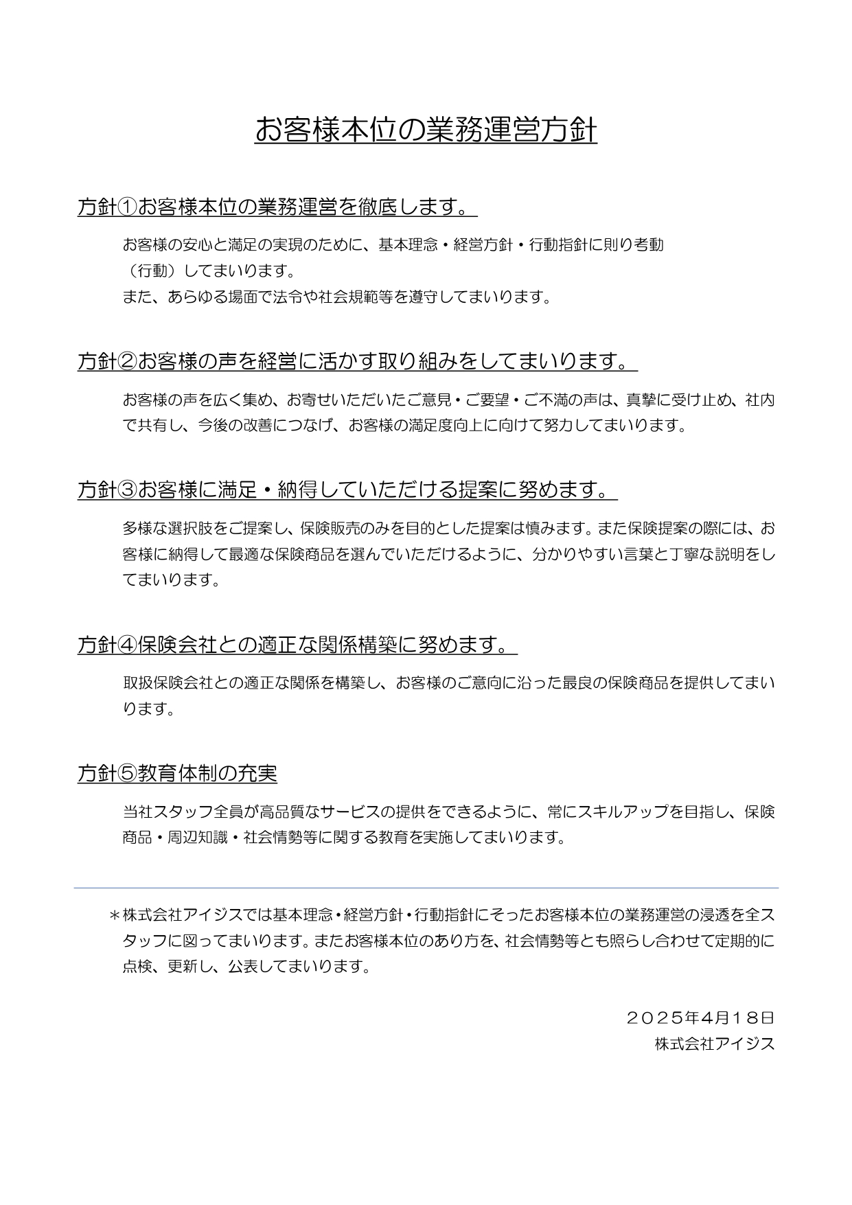 お客様本位の業務運営方針